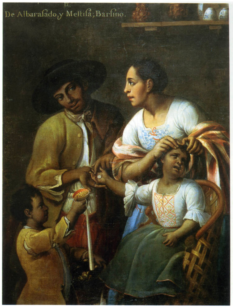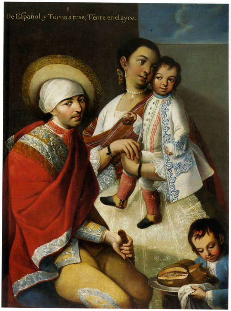 En el virreinato de Nueva España (México) en el siglo XVIII, se puso de moda entre los miembros de la sociedad más adinerados un género de pintura que reflejaba la diversidad racial de las colonias: las llamadas "pinturas de castas". Es probable que gran número de estos cuadros estuvieran destinados también a exportarse a España. La palabra casta designaba a los grupos raciales resultado de la mezcla de europeos, americanos y africanos en las colonias, donde pronto surgió un sistema para clasificar las diferentes permutaciones. Esta clasificación estaba relacionada en parte con la preocupación española por la llamada limpieza de sangre (la noción de que una persona con antepasados judíos o moros no podía considerarse cristiano viejo y por consiguiente de sangre limpia). Los términos más familiares hoy en día para designar a individuos de ascendencia mixta son mestizo (mezcla de europeo e indio) y mulato (europeo y africano). Para la segunda mitad del siglo XVIII, se había desarrollado un complejo esquema clasificatorio con muchas más designaciones, las cuales podían variar de región a región. Al mismo tiempo que este sistema reflejaba un profundo racismo, también reflejaba la innegable complejidad de la sociedad colonial y la creciente tendencia durante el siglo XVIII de buscar orden entre la complejidad. Este popular género de pintura era una respuesta estética al sistema de castas: una celebración acaso de la diversidad de las colonias pero también una reafirmación de jerarquías sociales basadas en categorías raciales arbitrarias.